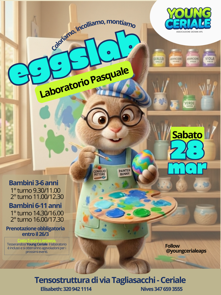 A cura dell'Associazione Young Ceriale Prenotazione obbligatoria entro il 26 marzo 2026 Costo € 5,00 a persona Tesserandosi Young Ceriale il laboratorio è incluso e si otterranno agevolazioni per i...