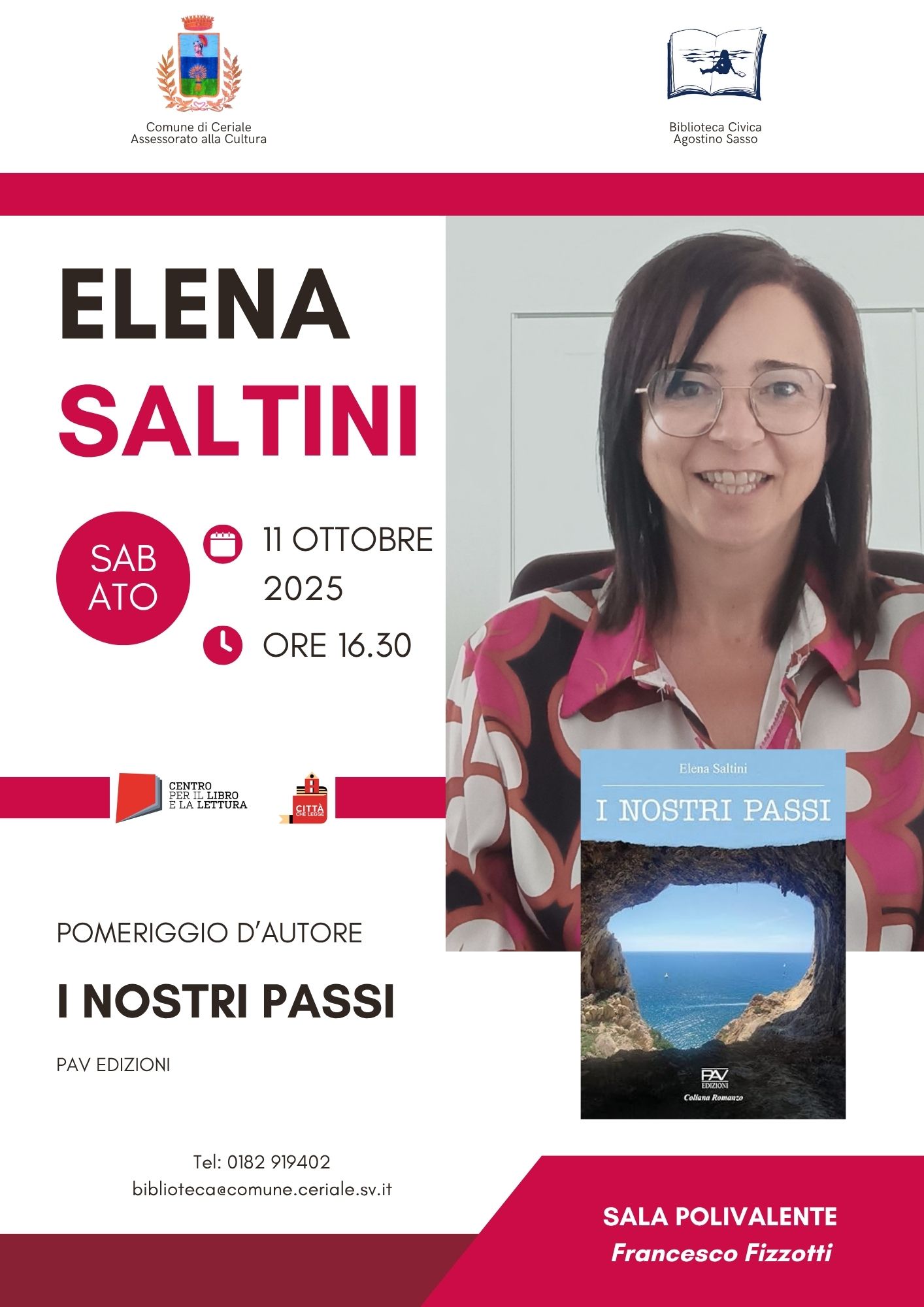 Ore 16:30 Elena Saltini Presenta il libro "I nostri passi" PAV Edizioni "Ti lasci trascinare dalla vita, senza avere la forza di decidere la tua direzione? Un libro, tante...